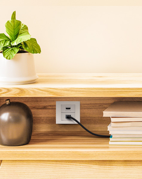 As miniplacas deixam tudo no lugar! Evite cabos soltos, mantenha o ambiente sempre organizado. Planeje esperas estratégicas nos móveis para ter mais funcionalidade e praticidade no dia a dia.