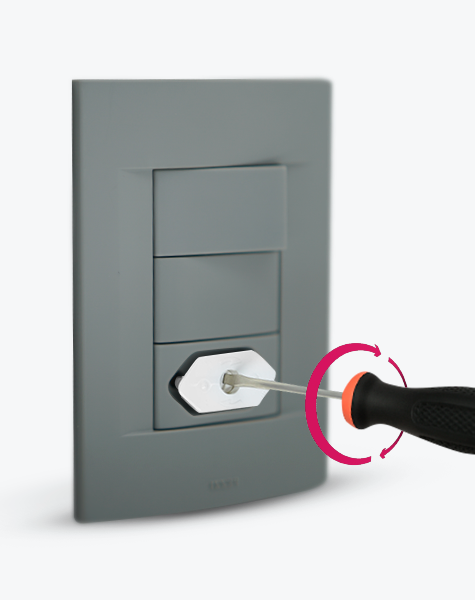 Para instalar o protetor, apenas encaixe na tomada. Para remover, utilize uma chave de fenda como auxílio e gire meia-volta.