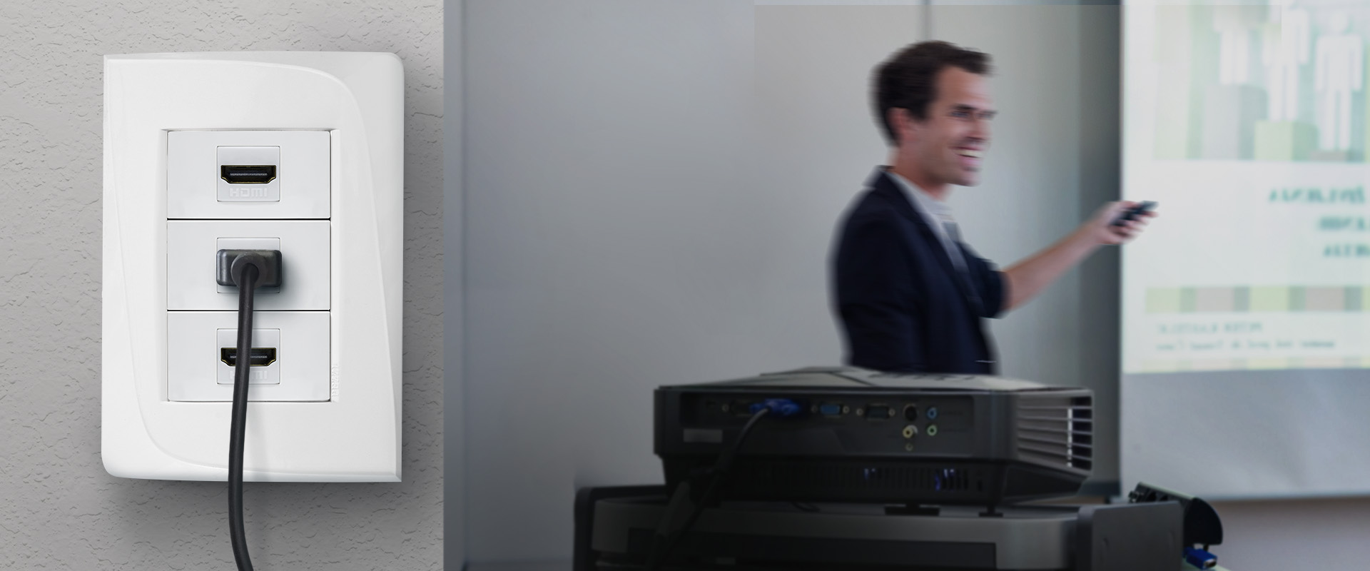 O módulo HDMI é indicado para quem busca agilidade e praticidade na rotina. Com ele, é só deixar a fiação pronta e conectar o cabo HDMI para usar, evitando a retirada constante de televisões e monitores do lugar para a conexão.